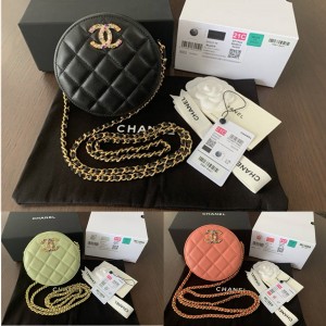 钻扣羊皮链子小包圆饼包AP1944编号21新品 口红包 小羊皮 带钻五金格外精致 尺寸:12cm 型号:AP1944 GKK..