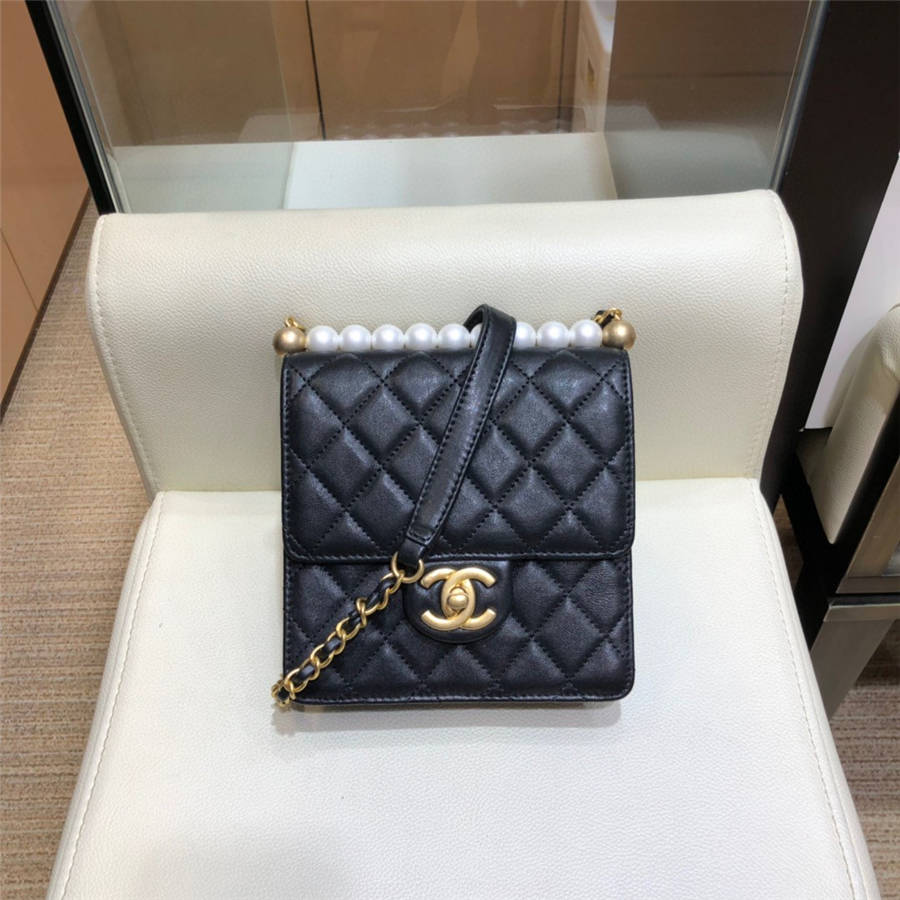 C家新款菱格羊皮珍珠口盖包链条包AS0585/AS0584