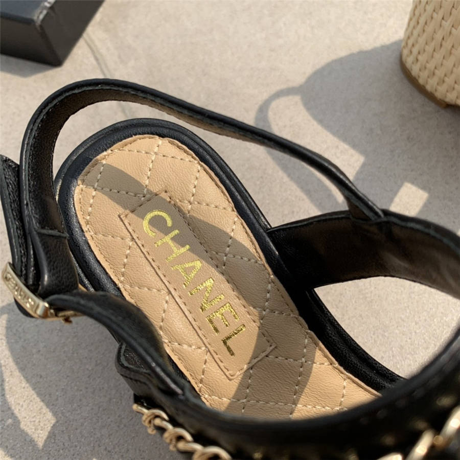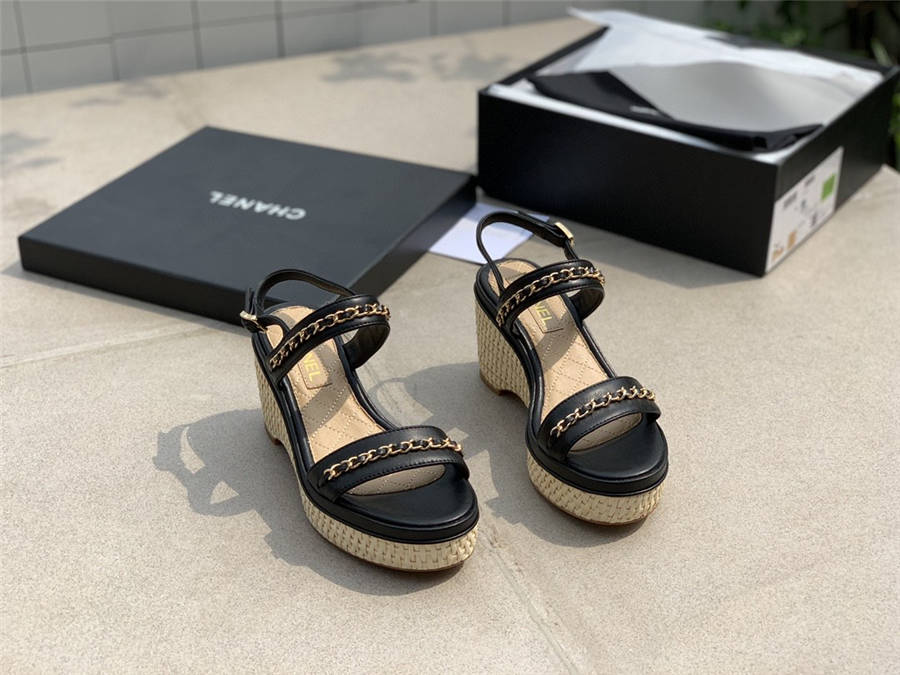 CHANEL官网香奈儿旗舰店新款编织厚底坡跟链条一字带凉鞋