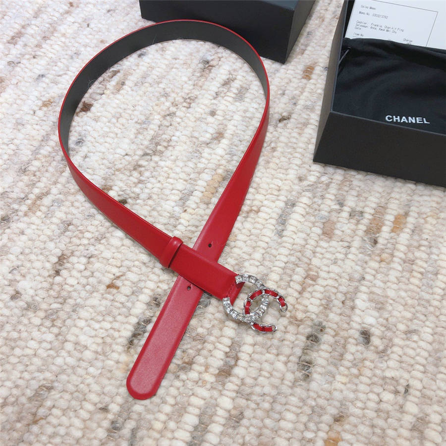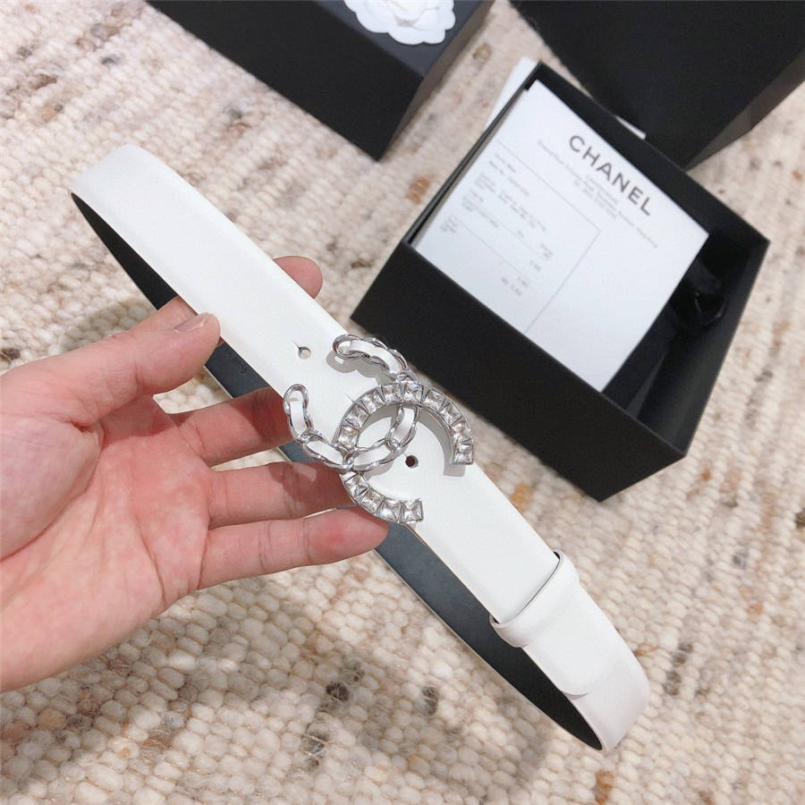 C家新款皮带经典女士小牛皮镶钻双C扣腰带编号CHANEL女士小牛皮腰带 镶钻双C扣 3.0cm宽度全套包装..