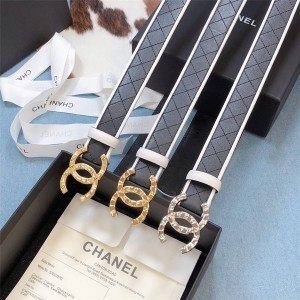 新款水晶钻石LOGO针扣皮带腰带编号CGK CHANEL女士窄版小牛皮腰带 2.0cm宽度 全套包装..