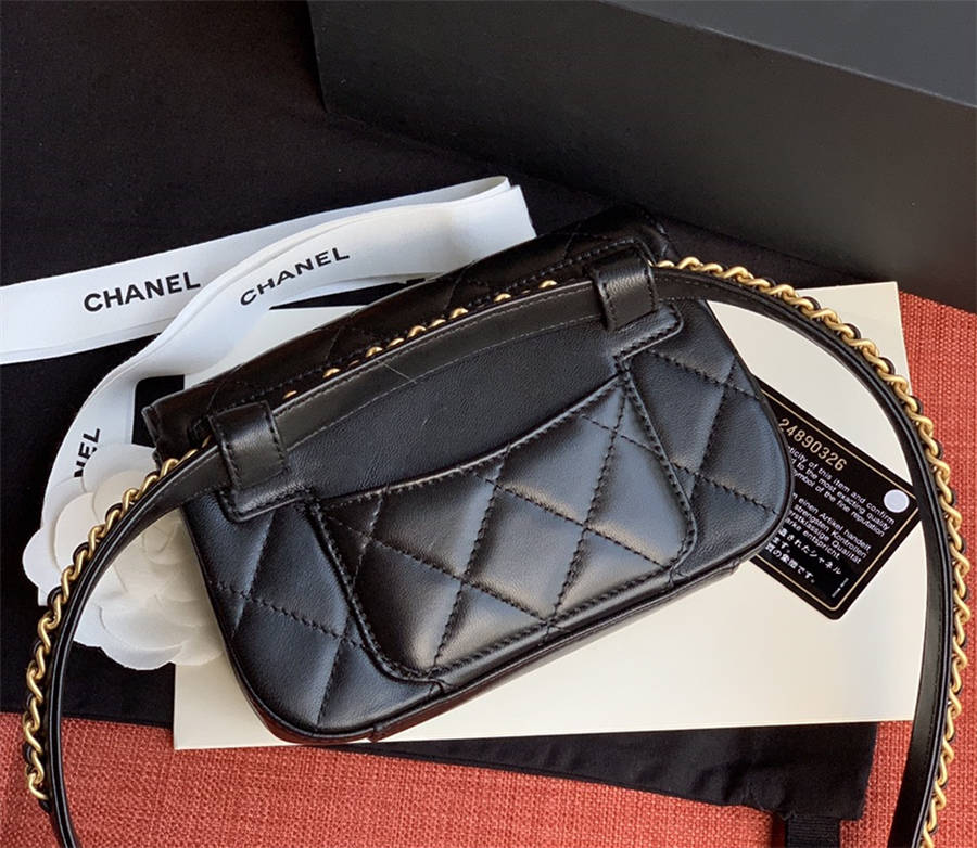 C家CHANE2019秋冬新款菱格羊皮腰包AS0973编号出货 预定从速 19秋冬新款 羊皮与金色金属腰包 尺寸:11*17*4*cm 黑色 红色 绿色ikk