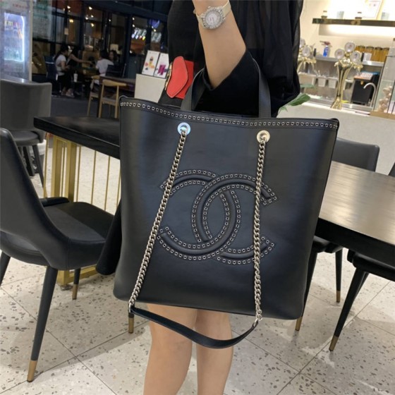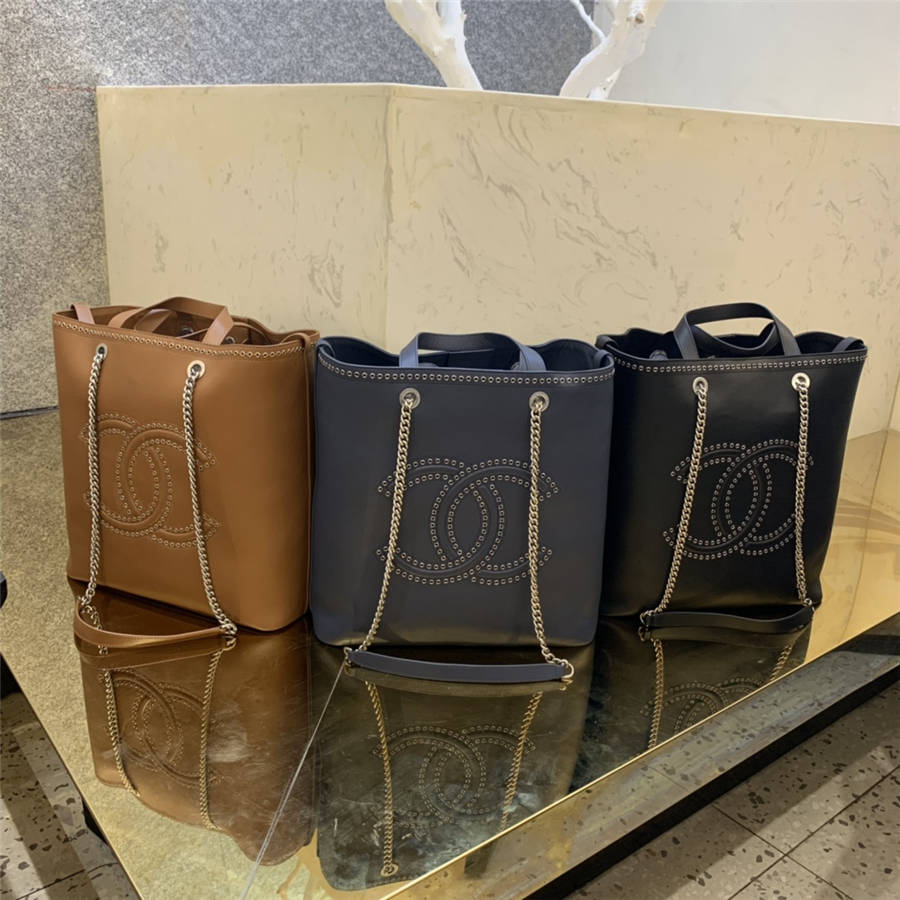Ohanel/ 18新品 意大利进口胎牛皮 金属镂空双C铆钉妈咪购物袋 链条包 单肩 手提包 69994 尺寸:高35*长30*宽14 bkfk