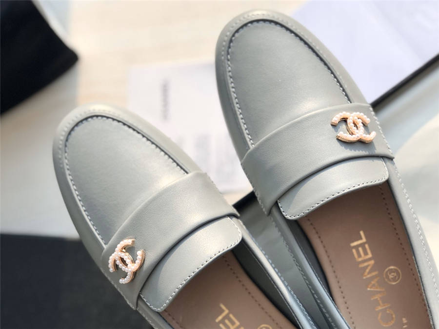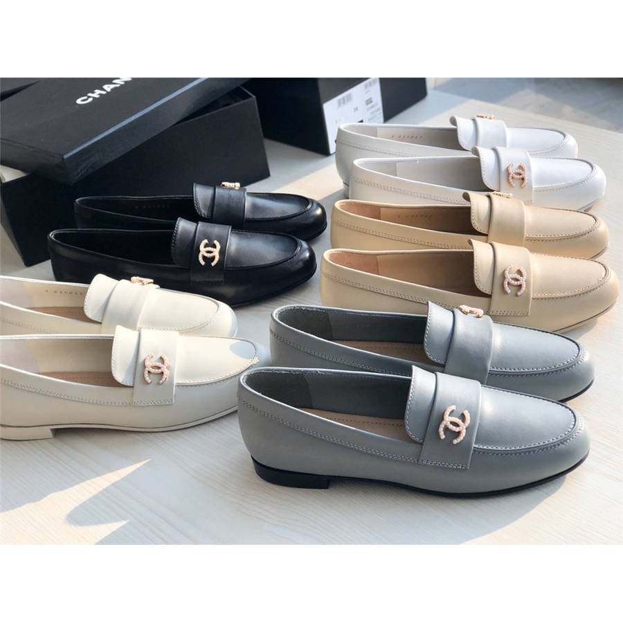 C家女鞋新款女款皮鞋真皮珍珠C扣平底便鞋单鞋G35632