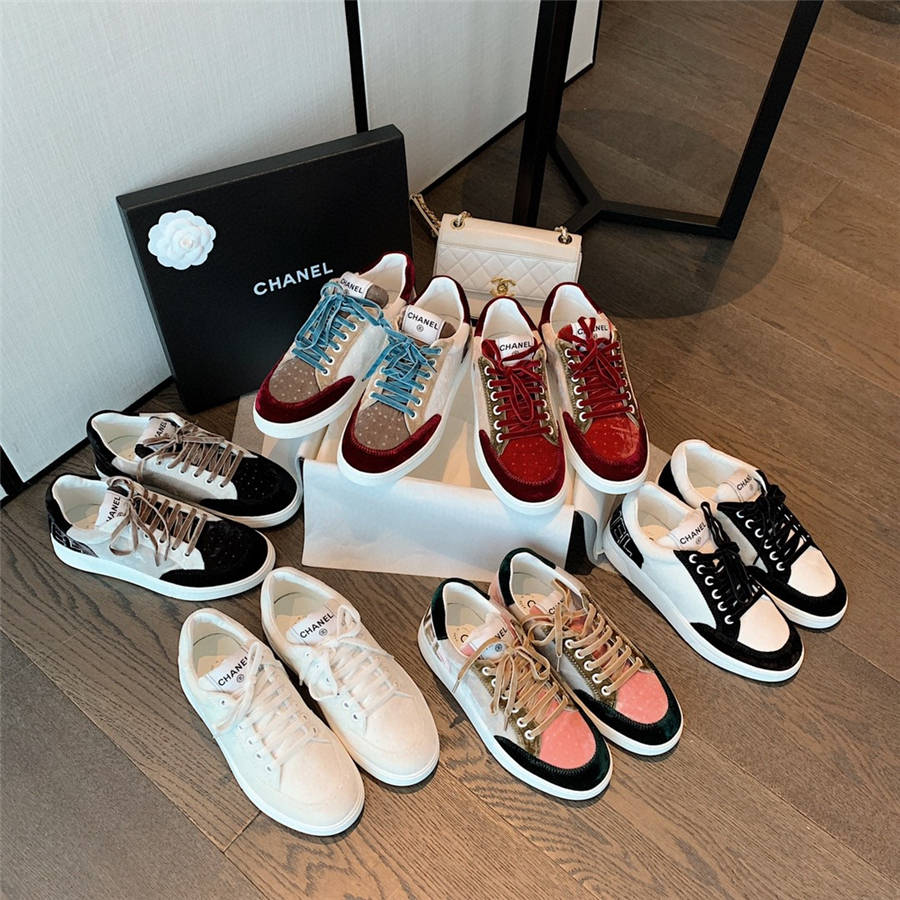 Chane* 2020SS 秋冬新款丝绒拼色休闲小白鞋,鲜艳的配色让人眼前一亮,超多网红同款!