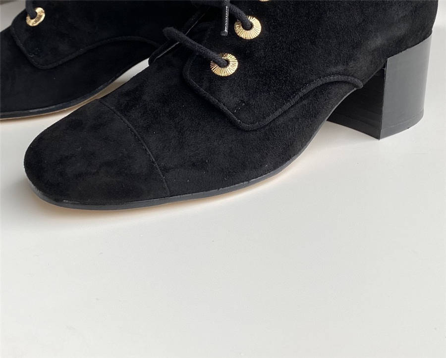 C家新款女靴羊皮/羊琼真皮粗跟系带马丁靴短靴