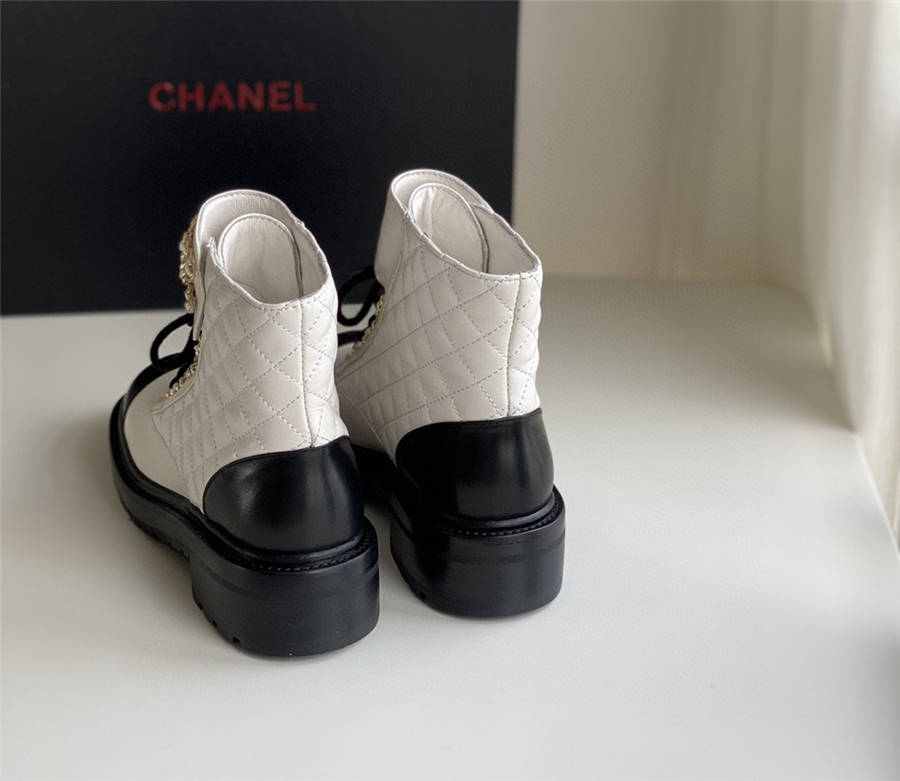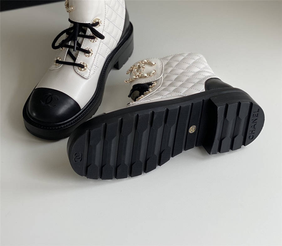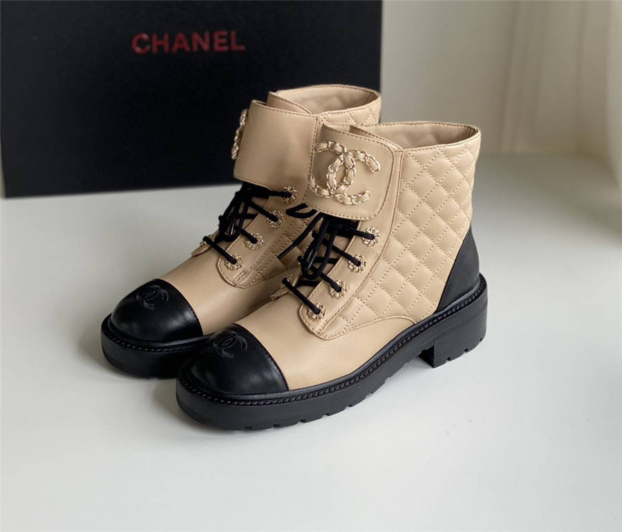C家新款女靴真皮双C LOGO系带鞋机车靴短靴G36424