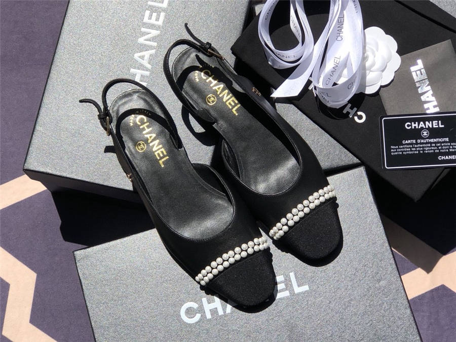 C家新款鞋子羊皮拼接珍珠装饰平底/粗跟高跟凉鞋