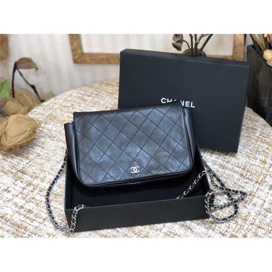 C家新款菱格平纹牛皮WOC单肩斜挎包链条包