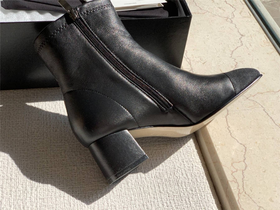 efk经典再现❗羊毛内里 尺码:35-39码 小香粗跟拼接羊皮短靴~女人的鞋子是永远买不完的 特别是小香 让多少女人欲罢不能 年秋冬新品羊皮靴绝对是不二之选 醒目的双C标志带来的不仅是好看 更是大牌那种奢侈的气质 ~ 咱家啥货啥品质都会直白的告诉大家 国外大客在国内贸易公司御用订单 因为所有材质工艺技术都是老外带版图材质提供的 完全可以与柜品质媲美 这种价位卖的就是性价比 经典的羊皮靴 上脚超显气质 后侧处的闪光金属小香字母Logo又能圈走大批粉丝 意大利进口羊皮➕山东绸 手感柔软 混种羊皮内里 做工精细 进口意大利真皮大底 跟高:5cm尺码:35-39 码数正常