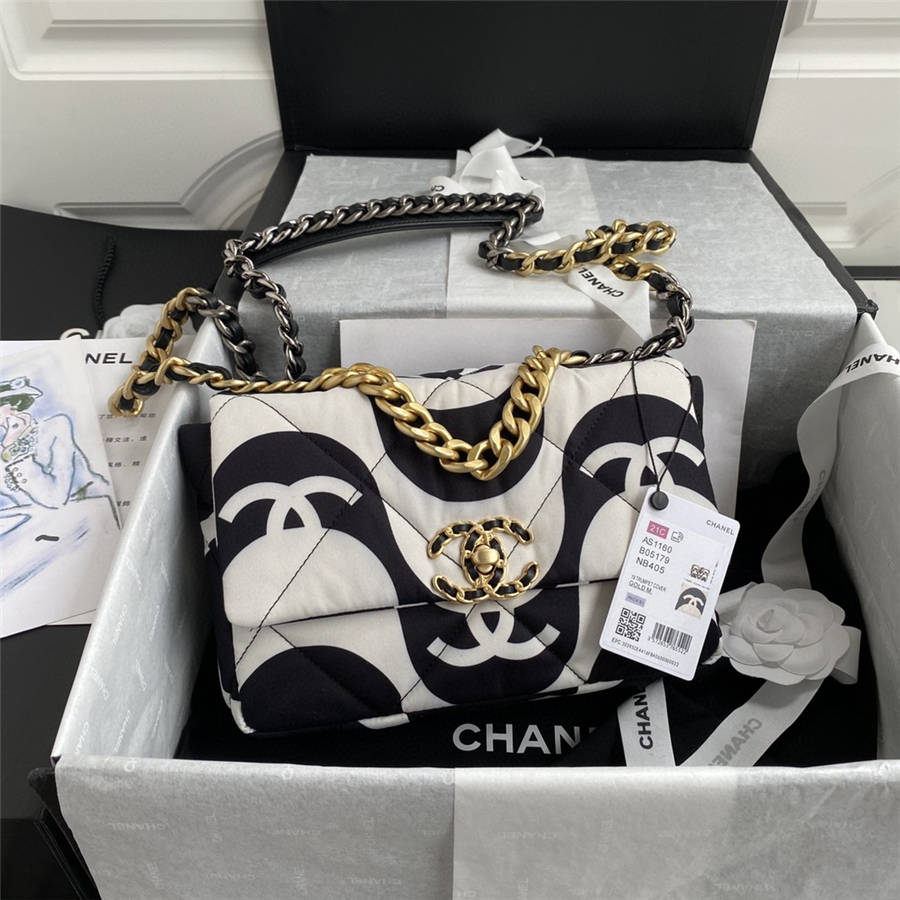 Chanel 21SS全新春夏系列 19bag 秒种草〰️ 印花织物面料 时尚风工艺 彰显非一般的时尚风潮成为当季最经典的潮范儿 原同使用三拼色五金链条分别为古银、古金、亮银色尺寸:26/30cm