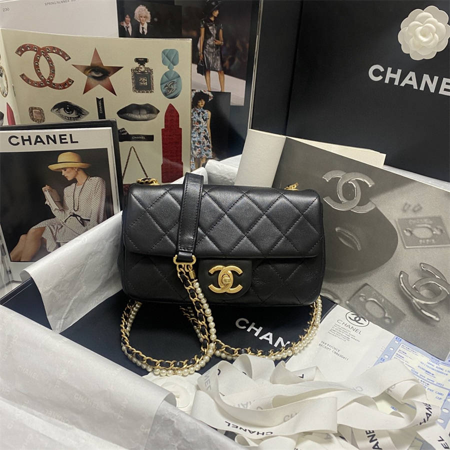 GIK 现货 Chane珍珠口盖包 这只口盖包美透了 金属扣环间隔固定着链条与珍珠链 做旧五金搭配珍珠链条 有着小女人的小性感 既温柔又可爱 一年四季皆可使用 容量非常可观 型号As2210 尺寸21×6×12